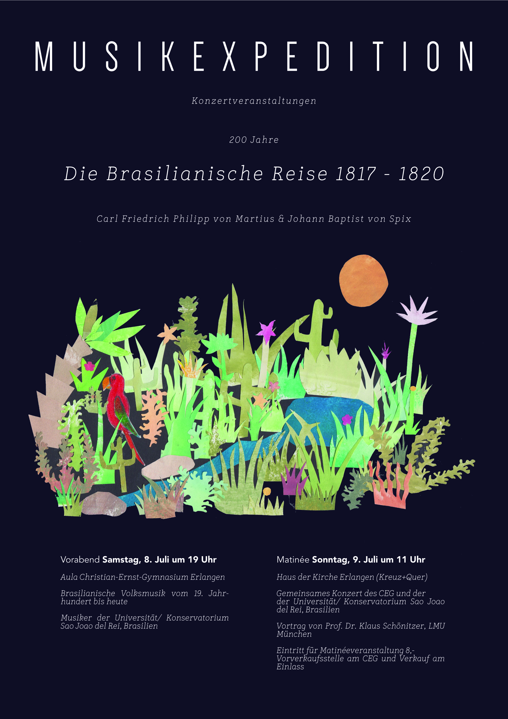 Im April dieses Jahres waren bereits Dr. Christian Stemmler und Manfred Hopfengärtner, die eine „Musik-Expedition“ zu Ehren des 200-jährigen Jubiläums planen und durch BAYLAT bekannt machten. Gemeinsam mit der Bundesuniversität und dem Staatlichen Konservatorium für Musik von São João del-Rei in Mina Gerais, Brasilien, sowie dem Christian-Ernst-Gymnasium Erlangen wird es im Rahmen der „Musik-Expedition“ am 8. und 9. Juli Konzerte in Erlangen geben.