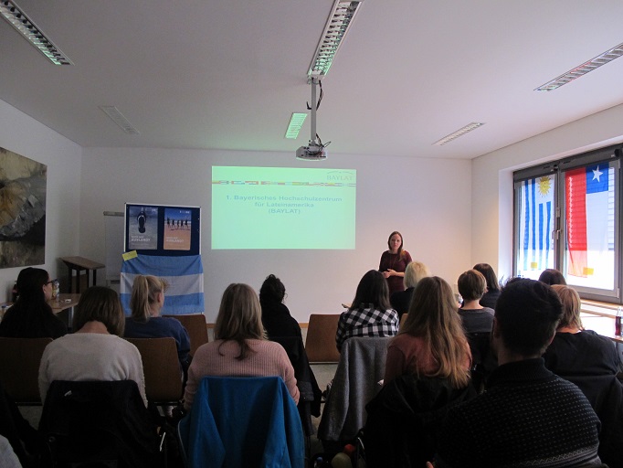 Am 25. Oktober 2017 veranstaltete die Technischen Hochschule Deggendorf (THD) den Ländertag Lateinamerika. Dipl.-Pol. Luise Freitag, Referentin und Förderbeauftragte des Bayerischen Hochschulzentrums für Lateinamerika (BAYLAT) war mit einem Infostand vertreten und hielt einen Vortrag zum Thema „Studium und Praktikum in Lateinamerika“.