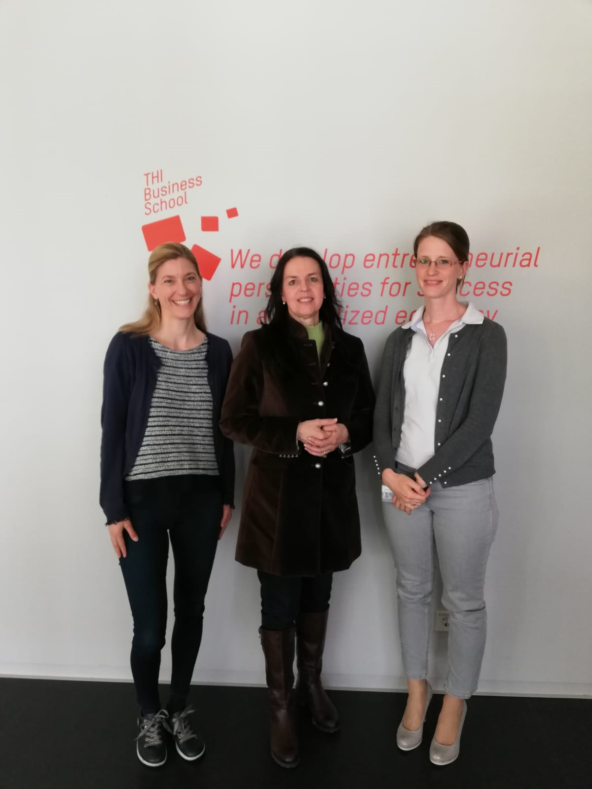 Am 25. April 2019 stattete BAYLAT Geschäftsführerin Dr. de Melo-Reiners der THI Business School der Technischen Hochschule Ingolstadt einen Besuch ab. Bei einem Treffen mit den Dekanatsreferentinnen Dipl.-Reg.-Wiss. Nicole Kimmich und Bettina Spiegel wurde die bereits bestehende, erfolgreiche Zusammenarbeit zwischen der Hochschule Ingolstadt und BAYLAT im Projekt AWARE besprochen.