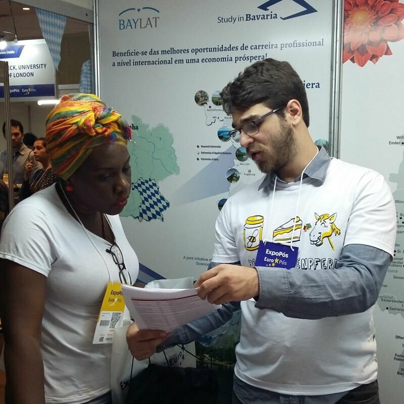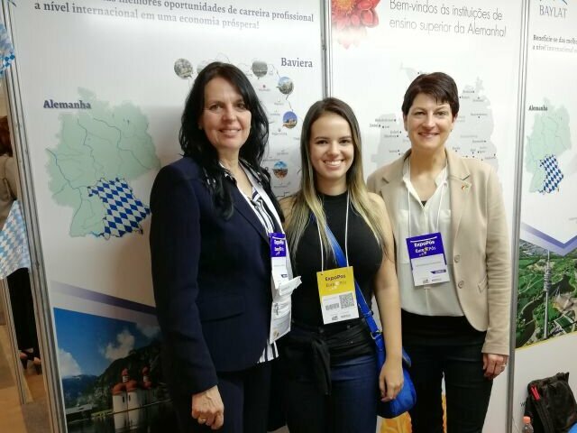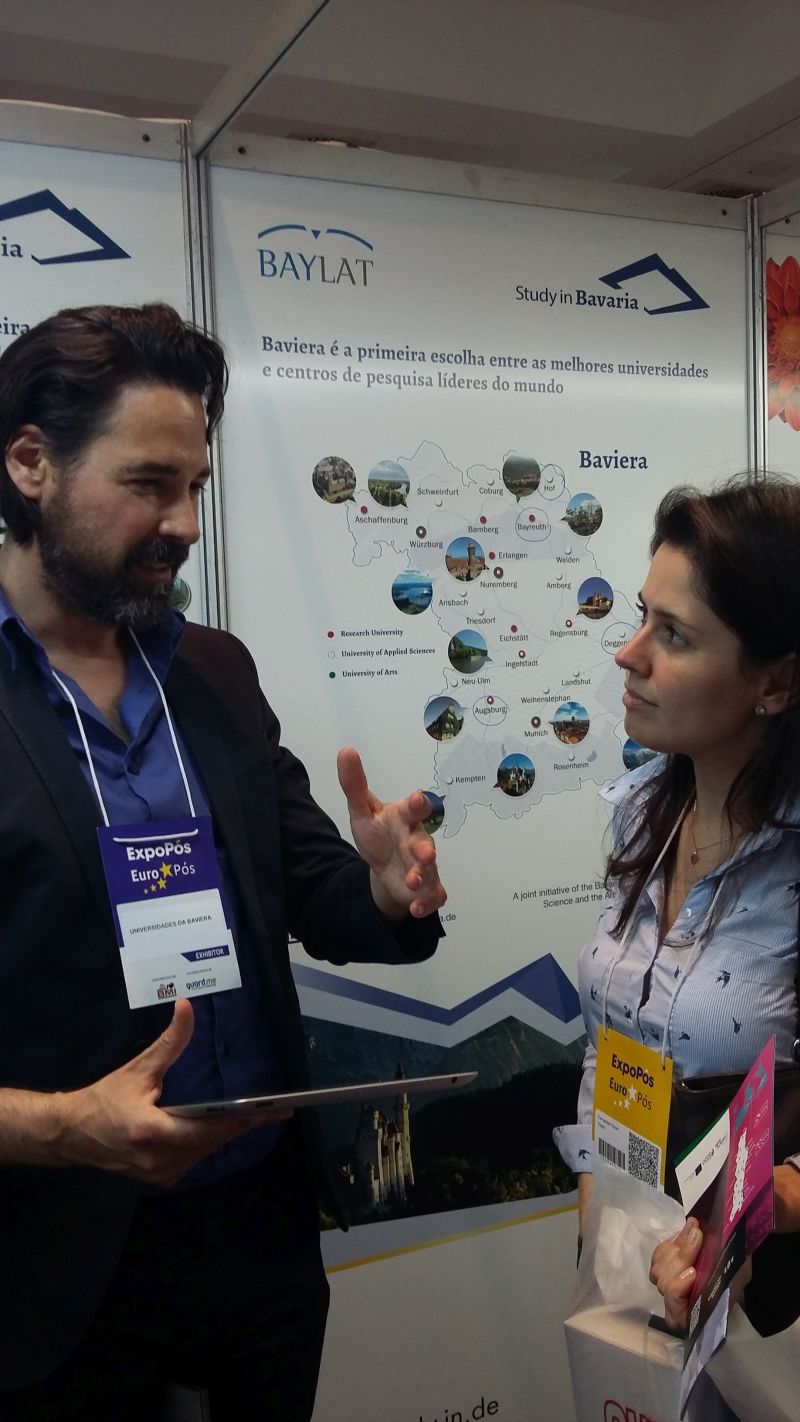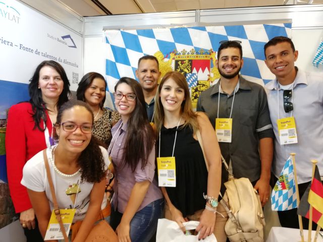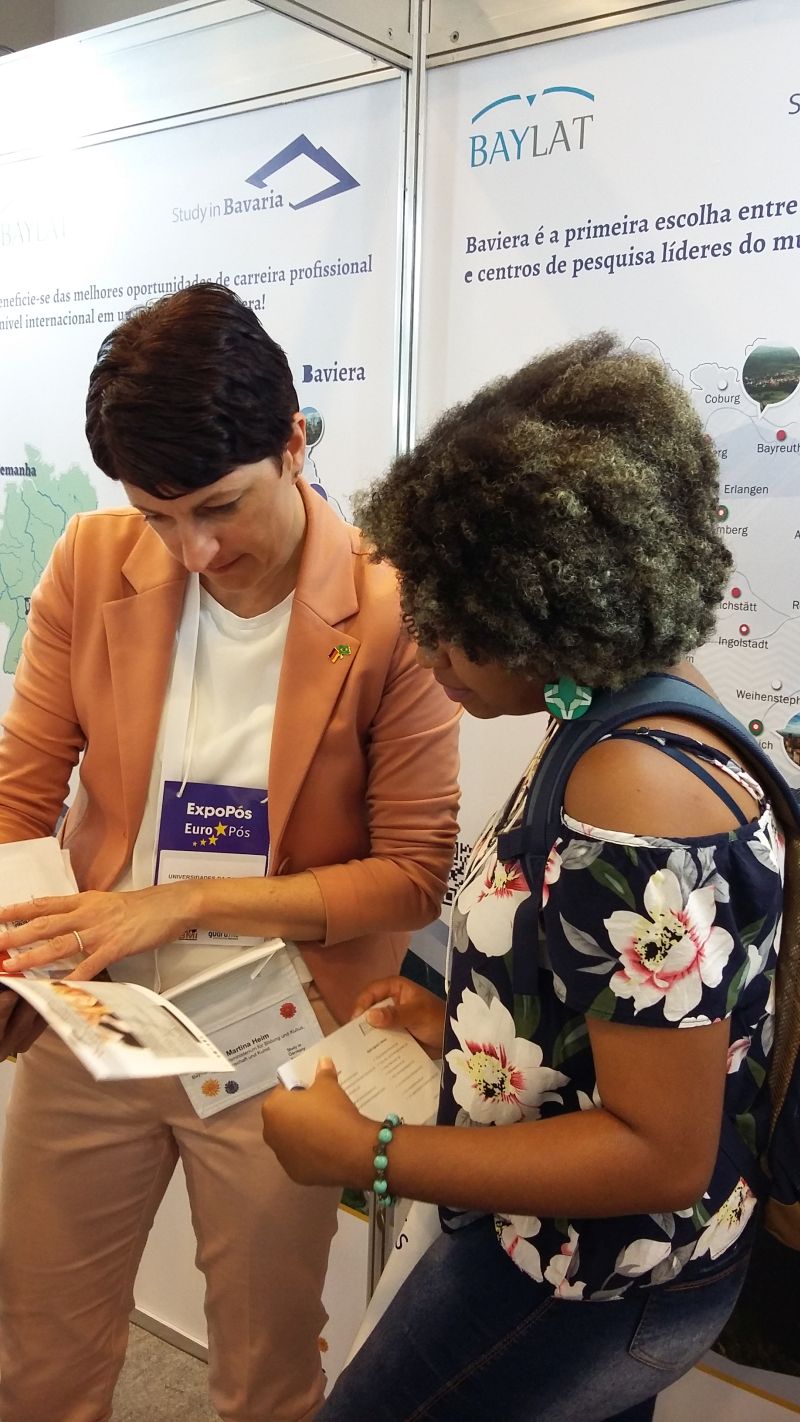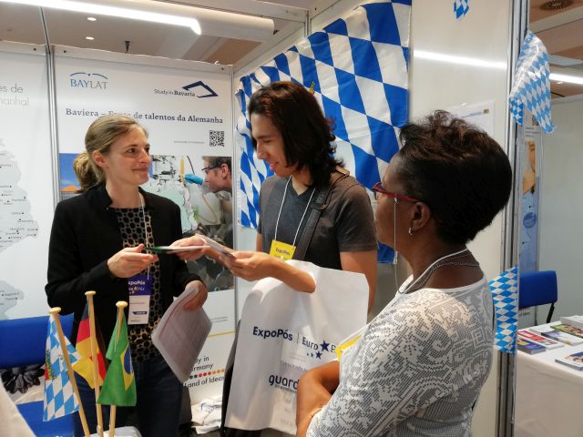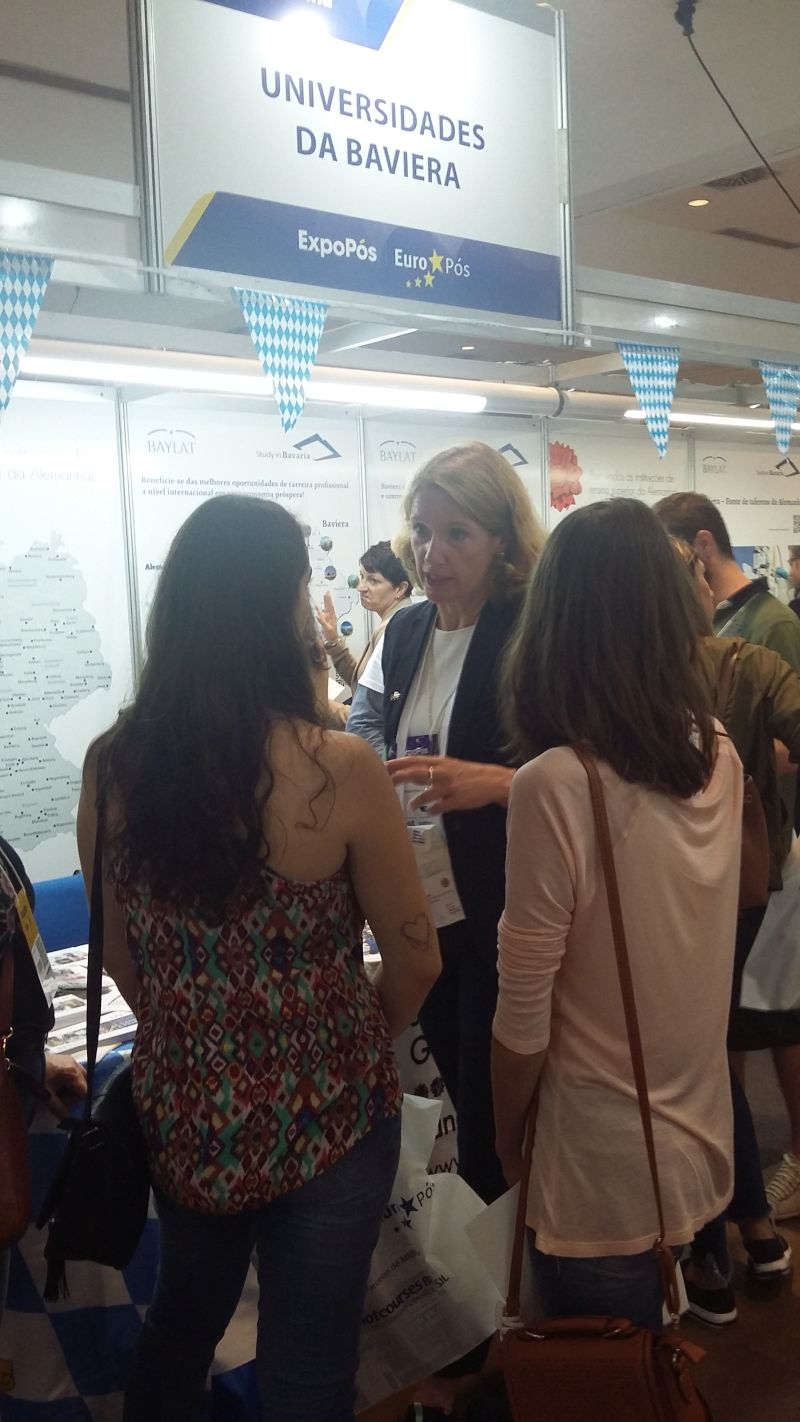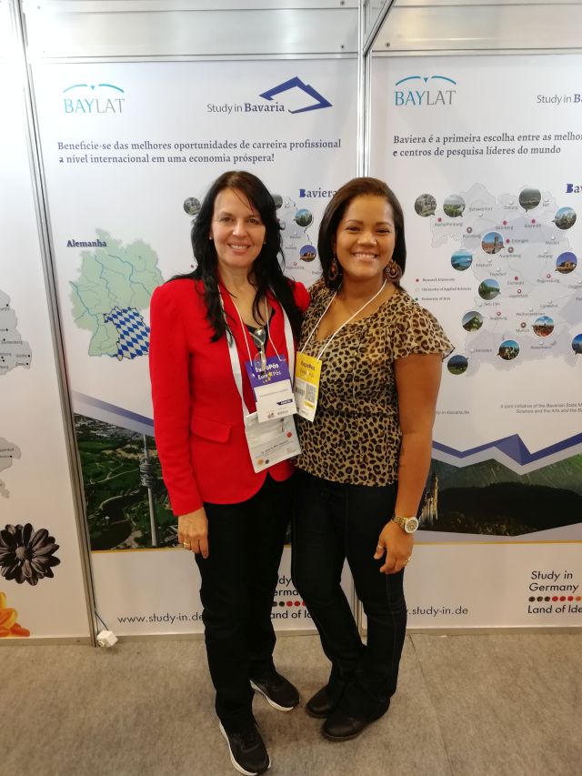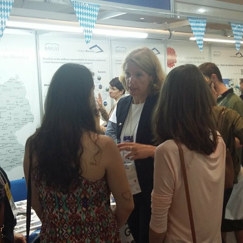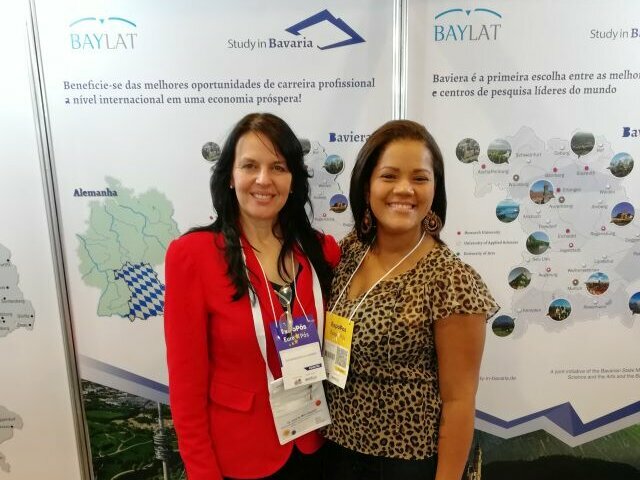 Nach den Jahren 2011 und 2014 fand dieses Jahr die Gate-Germany-Hochschulmesse EuroPós Brasil an den Standorten Rio de Janeiro und São Paulo statt. Von 19. bis 22. April 2018 konnten sich interessierte MessebesucherInnen an den mehr als 50 Ständen der europäischen Aussteller über ein Studium, einen Forschungsaufenthalt, oder über Sprachkurse in Europa informieren. Das Bayerische Hochschulzentrum für Lateinamerika (BAYLAT), vertreten durch Dr. Irma de Melo-Reiners, BAYLAT-Geschäftsführerin und Nadine Blamberger M.A., BAYLAT-Referentin und Marketingbeauftragte, organisierte wie bereits in den Messeauflagen der vergangenen Jahre erneut den bayerischen Stand und beriet zusammen mit HochschulvertreterInnen die brasilianischen Interessierten über die Studien- und Forschungsmöglichkeiten des Freistaates Bayern.