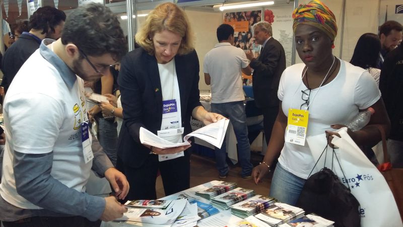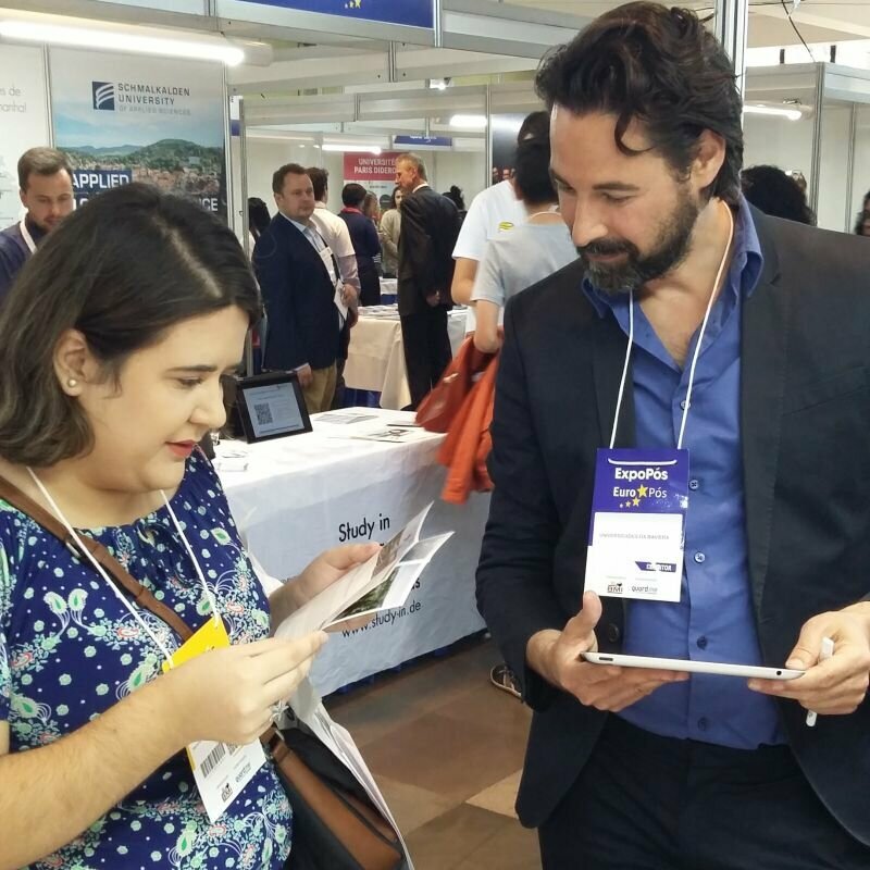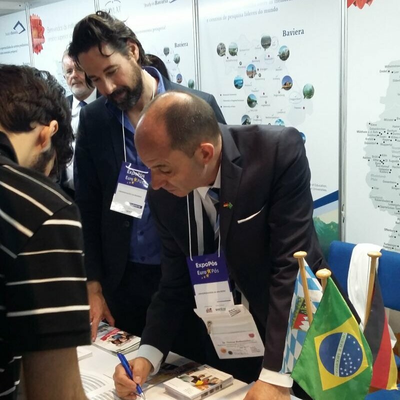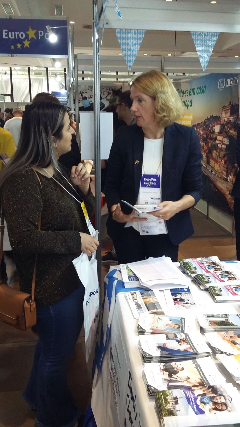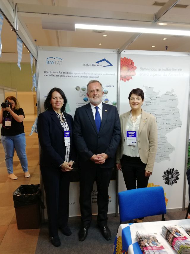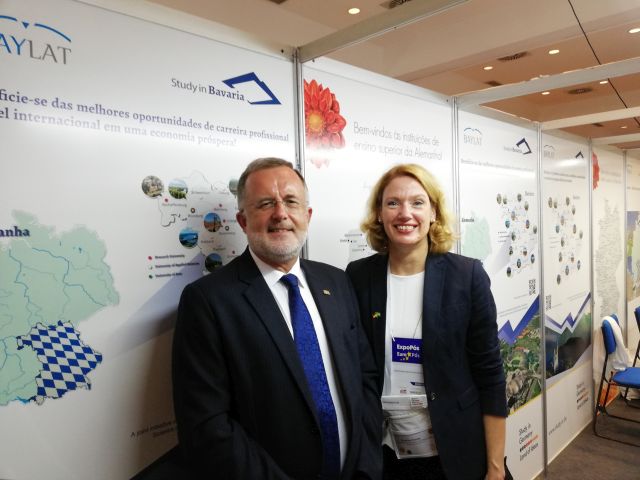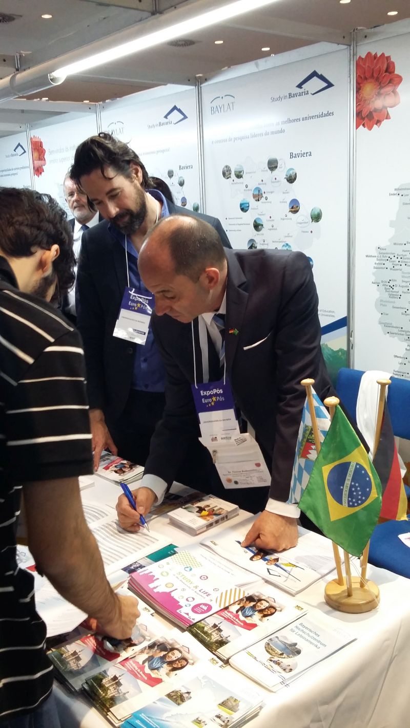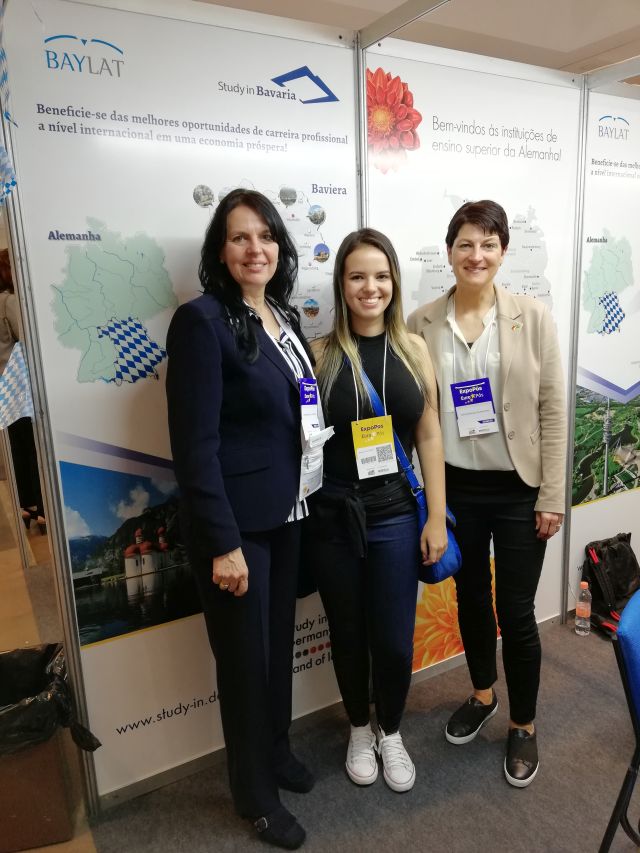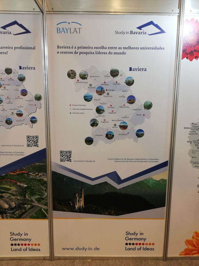 Nach den Jahren 2011 und 2014 fand dieses Jahr die Gate-Germany-Hochschulmesse EuroPós Brasil an den Standorten Rio de Janeiro und São Paulo statt. Von 19. bis 22. April 2018 konnten sich interessierte MessebesucherInnen an den mehr als 50 Ständen der europäischen Aussteller über ein Studium, einen Forschungsaufenthalt, oder über Sprachkurse in Europa informieren. Das Bayerische Hochschulzentrum für Lateinamerika (BAYLAT), vertreten durch Dr. Irma de Melo-Reiners, BAYLAT-Geschäftsführerin und Nadine Blamberger M.A., BAYLAT-Referentin und Marketingbeauftragte, organisierte wie bereits in den Messeauflagen der vergangenen Jahre erneut den bayerischen Stand und beriet zusammen mit HochschulvertreterInnen die brasilianischen Interessierten über die Studien- und Forschungsmöglichkeiten des Freistaates Bayern.
