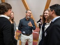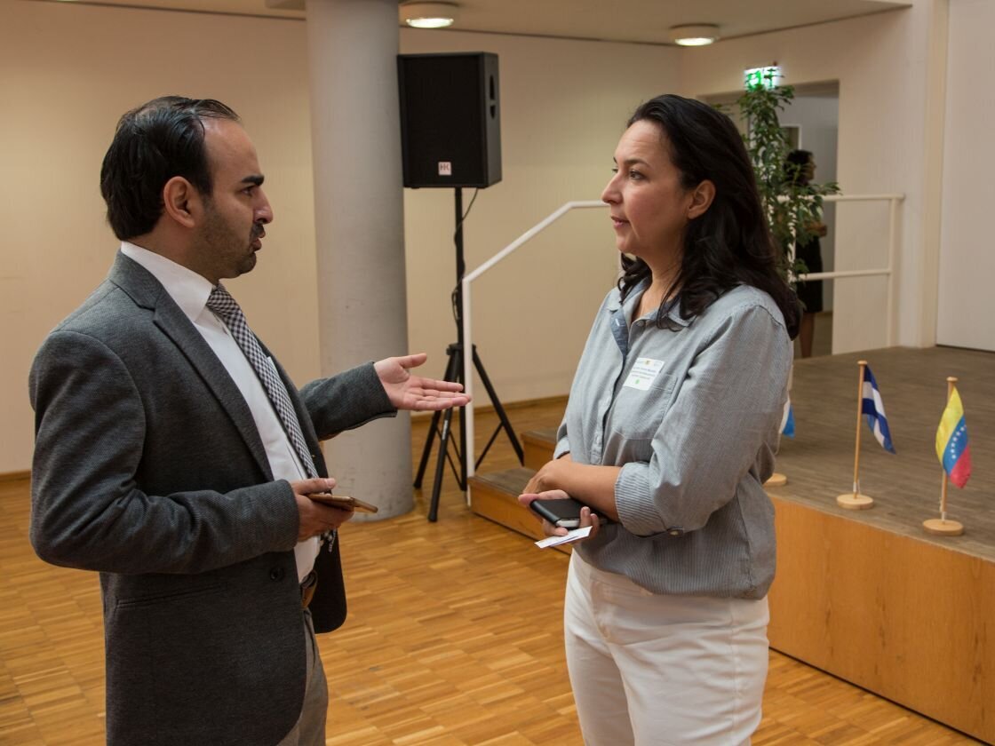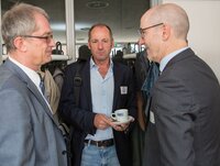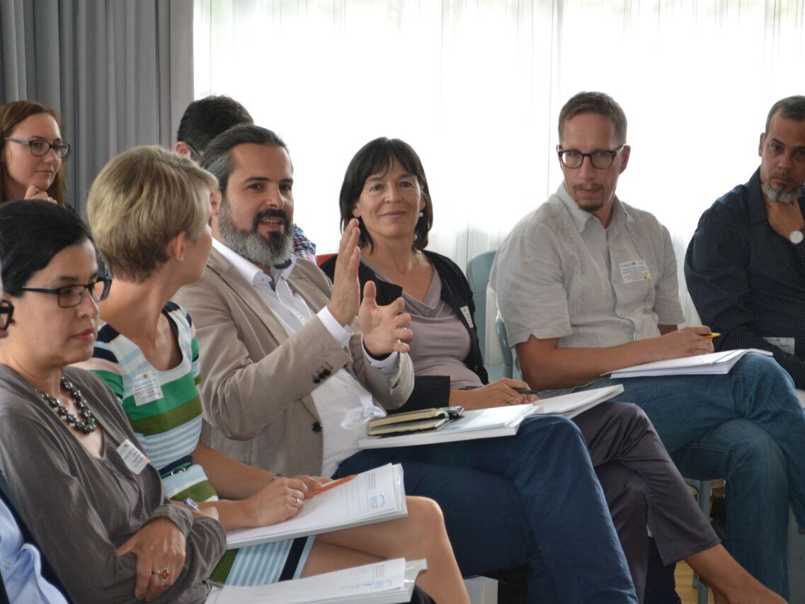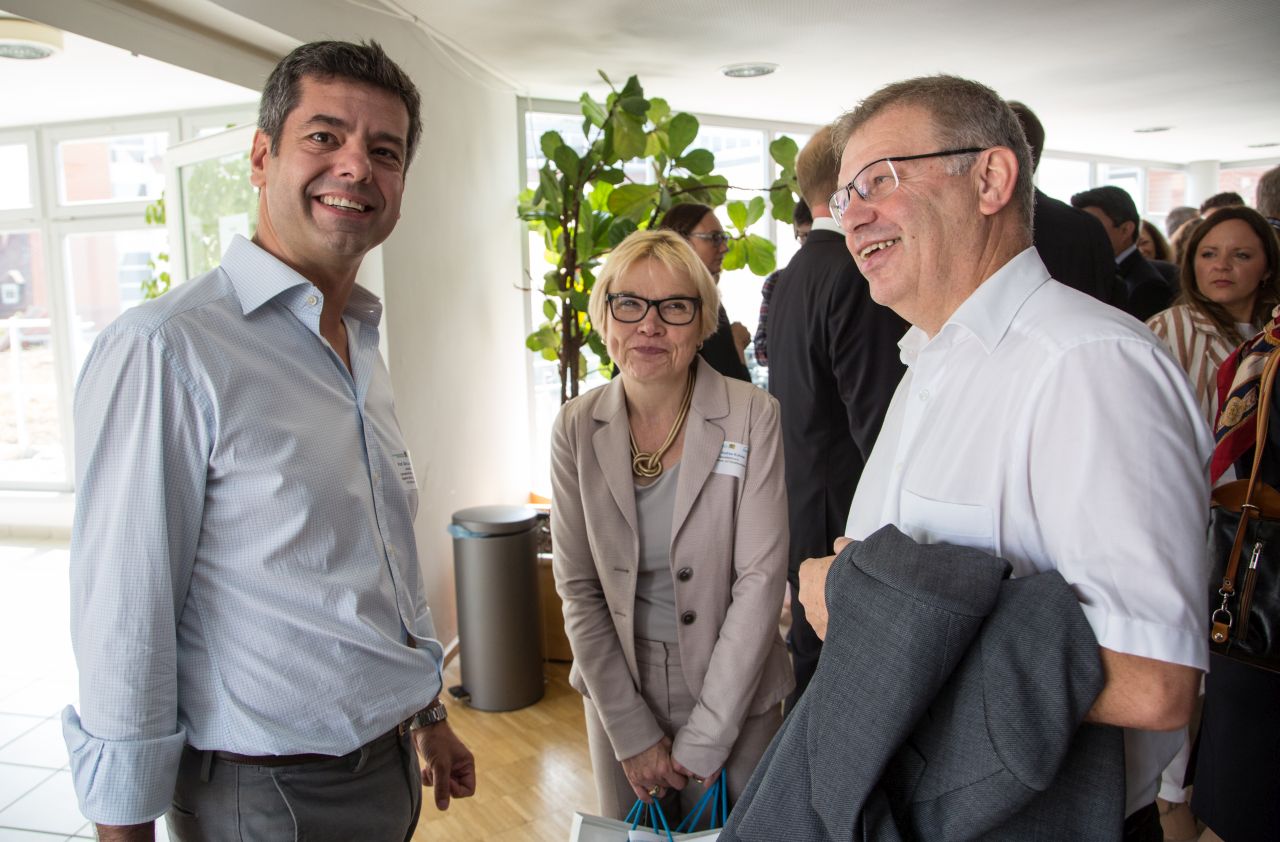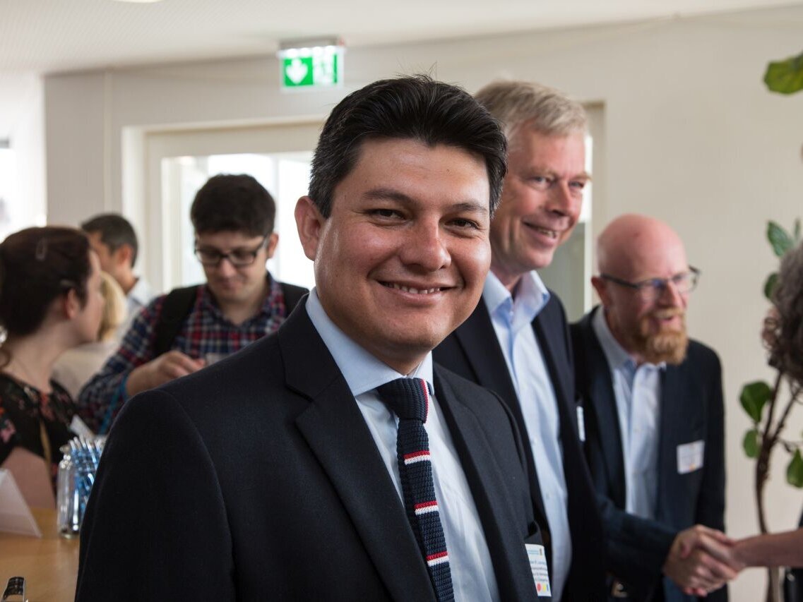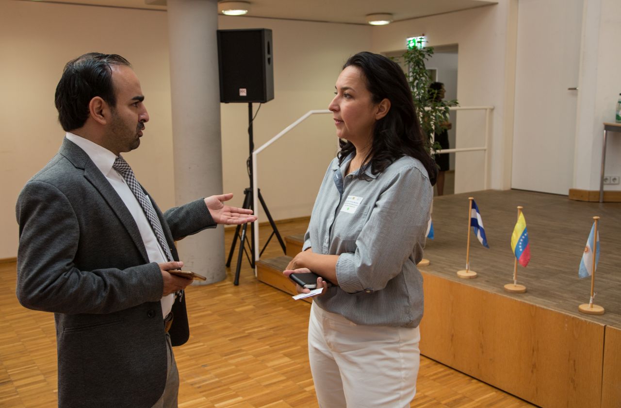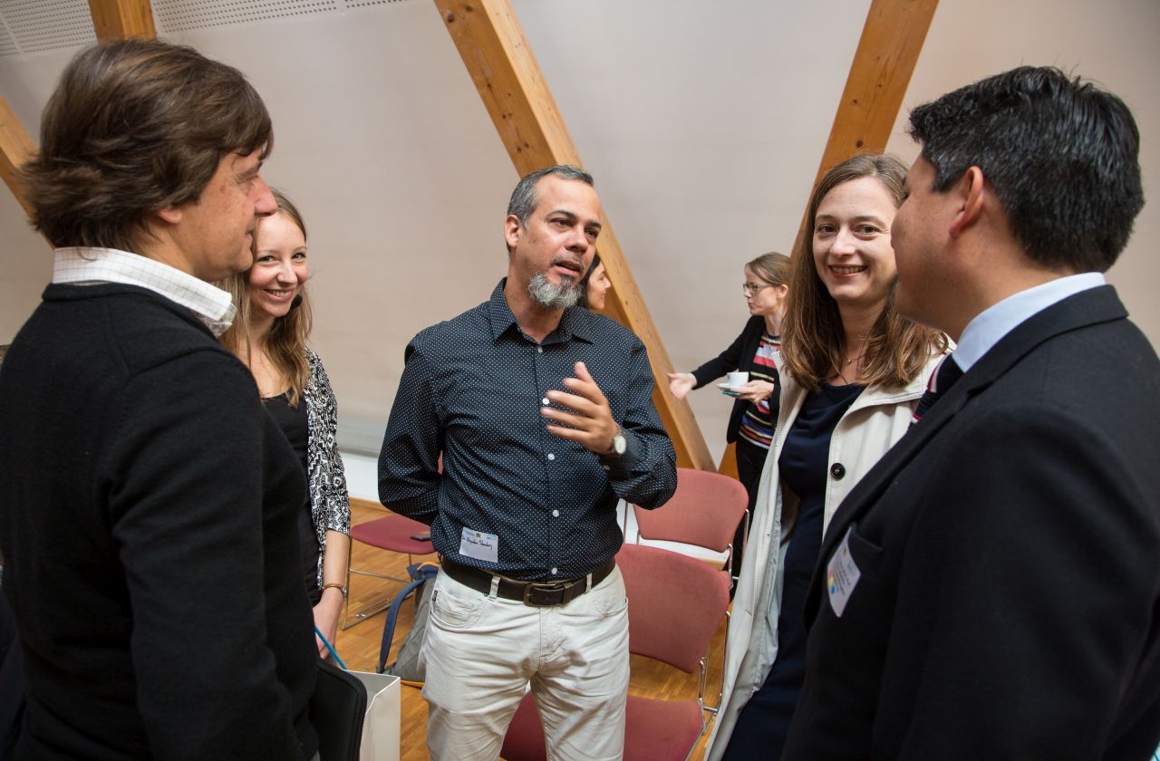 Es war eine große Ehre, dass Stefan Schneider als Leiter des Referats für die Zusammenarbeit mit Nord- und Südamerika des BMBF einen Impulsvortrag an die geladenen Gäste richtete. Herr Schneider präsentierte die Zusammenarbeit des BMBF mit den lateinamerikanischen Staaten und ging auch intensiv auf das Förderangebot des Bundesministeriums ein. Im Nachgang hatten die teilnehmenden Wissenschaftlerinnen und Wissenschaftler die Möglichkeit sich in direkten Gesprächen mit Stefan Schneider und seinem Kollegen, Dr. Matthias Frattini, Ansprechpartner für Brasilien und Kuba des Internationalen Büros des DLR, auszutauschen. Diese Möglichkeit wurde von den Teilnehmerinnen und Teilnehmern rege genutzt.