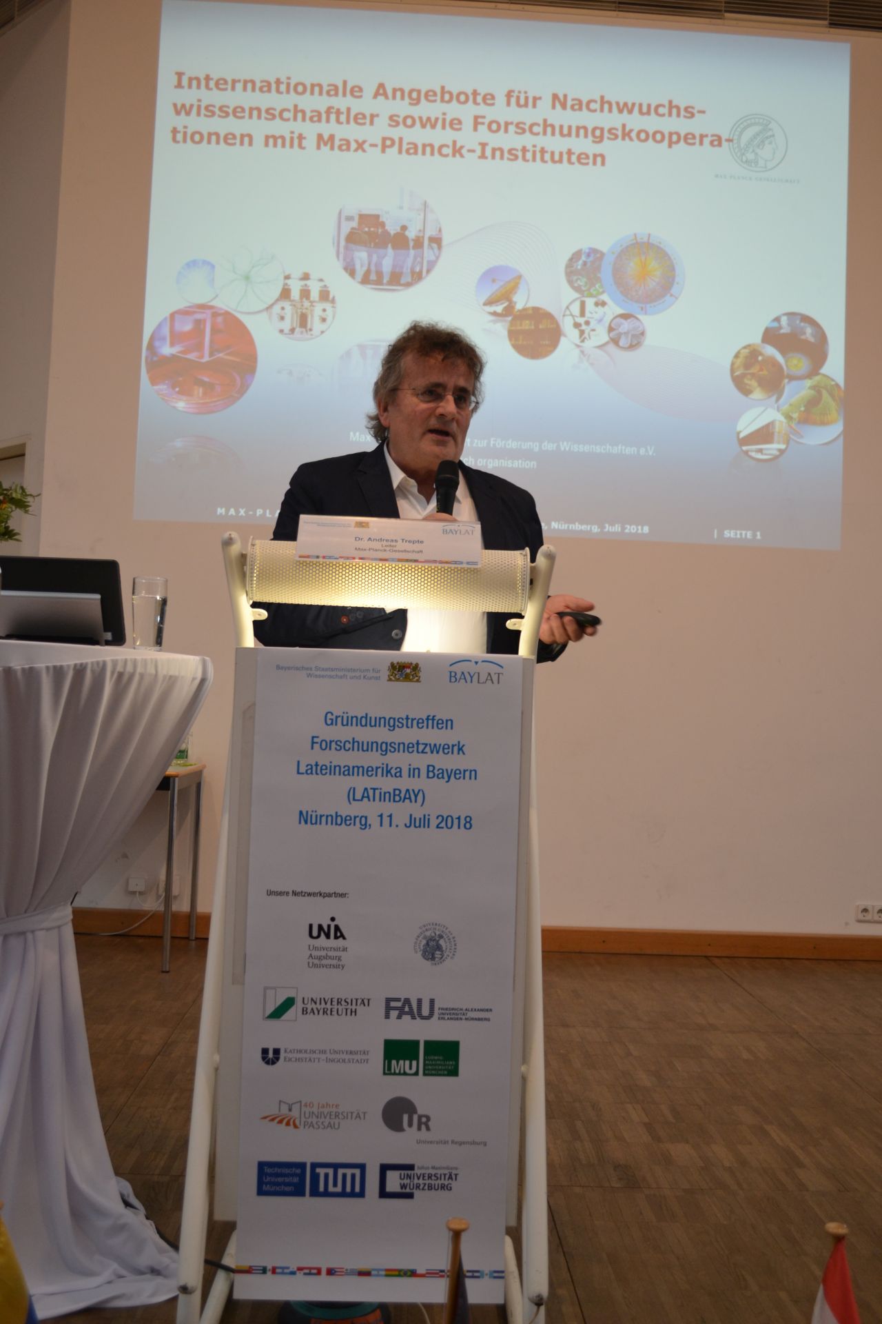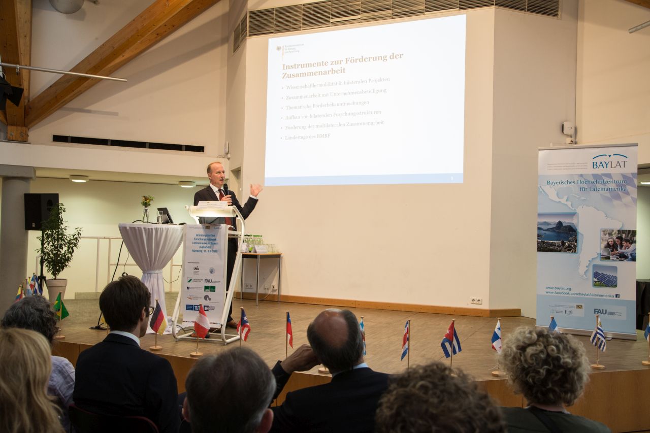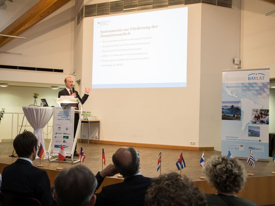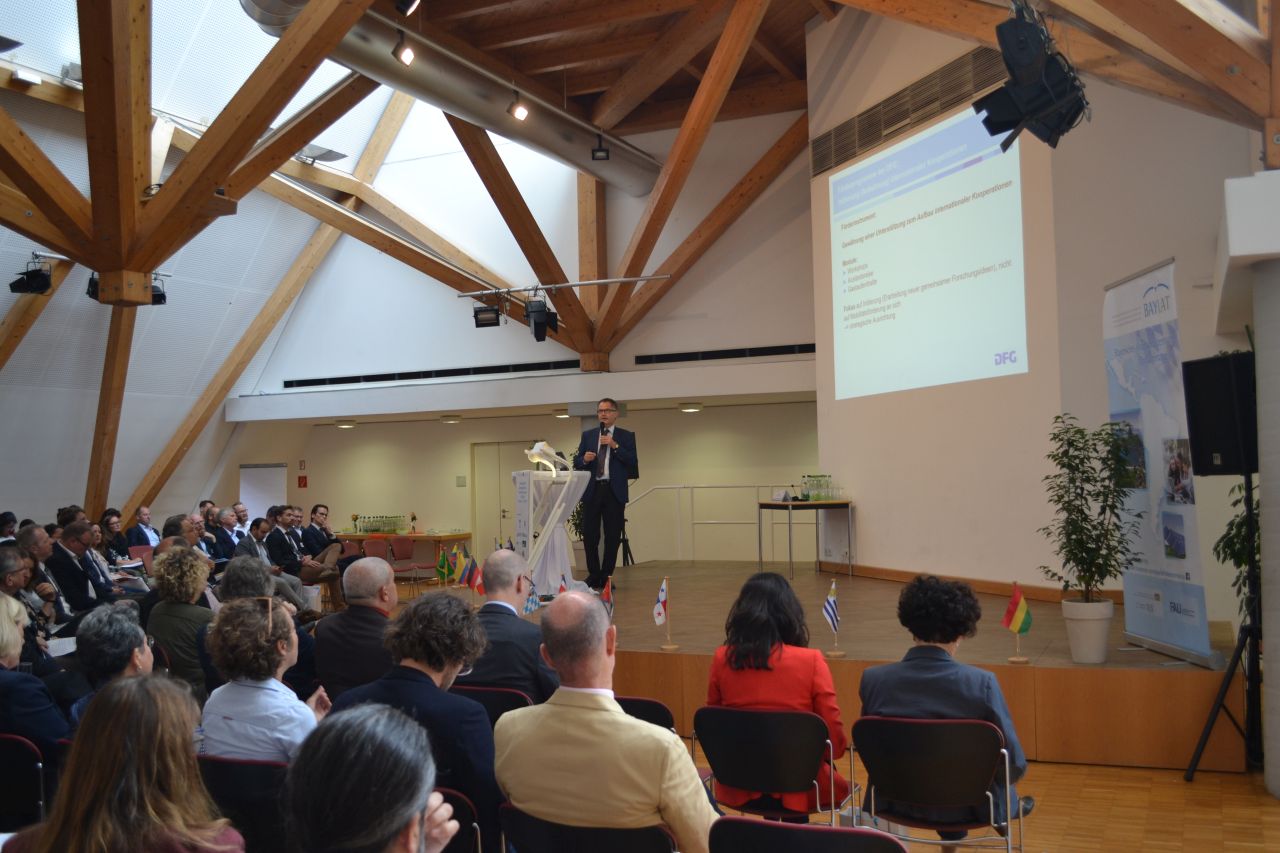 Die auf Landesebene geplante Initiative holte auch Vertreterinnen und Vertreter der Bundesorgane nach Nürnberg. Institutionen wie Bundesministerium für Bildung und Forschung (BMBF), des Deutschen Zentrums für Luft- und Raumfahrt (DLR Projektträger), Deutscher Akademischer Austauschdienst (DAAD), Deutsche Forschungsgemeinschaft (DFG), Deutsch-Argentinisches Hochschulzentrum (DAHZ), Max-Planck-Gesellschaft (MPG) und Fraunhofer Gesellschaft nahmen ebenso wie diplomatische Vertreterinnen und Vertreter aus verschiedenen Ländern Lateinamerikas teil.