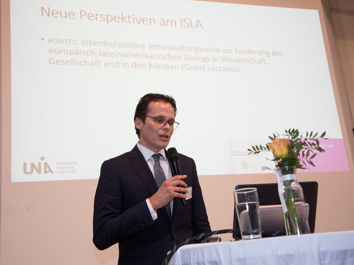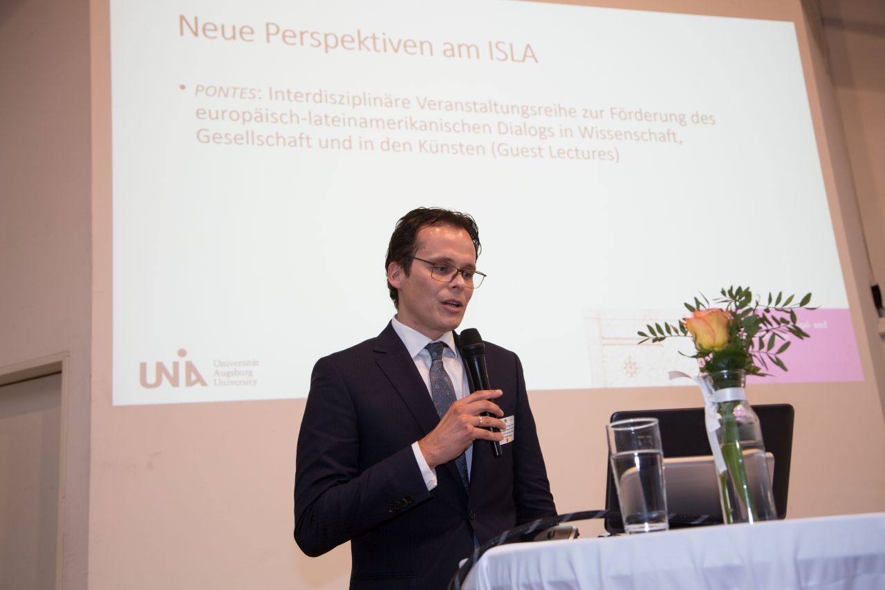 Auch die lateinamerikaspezifische Forschung an der Universität Augsburg wurde durch den Vortrag zu den Neuen Perspektiven der interdisziplinären Zusammenarbeit am Institut für Spanien-, Portugal-und Lateinamerikastudien (ISLA) von Prof. Dr. Joachim Steffen und Prof. Dr. Victor Andrés Ferretti dargestellt.