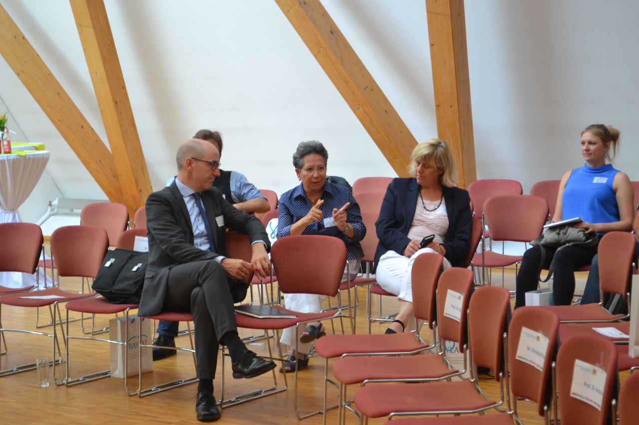 Die Netzwerkpause wurde zu intensiven Gesprächen genutzt. Die bayerische Wissenschaftscommunity stellte deutlich heraus, dass es ihnen ein wichtiges Anliegen ist, sich auch hochschul- und fachübergreifend zu vernetzen und in Austausch zu treten.