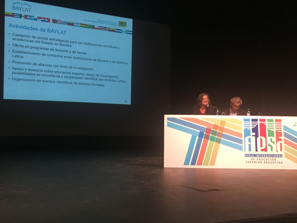 Als bekannt wurde, dass die Universidad Nacional de Cuyo (UNCUYO)[1] 2018 eine Internationale Hochschulmesse (Feria Internacional de Educación Superior) in Mendoza, Argentinien ausrichten würde, meldete BAYLAT sich umgehend für die Messe und erklärte sich bereit einen Bayerischen Stand für alle interessierten bayerischen Hochschulen zu organisieren und zu koordinieren.